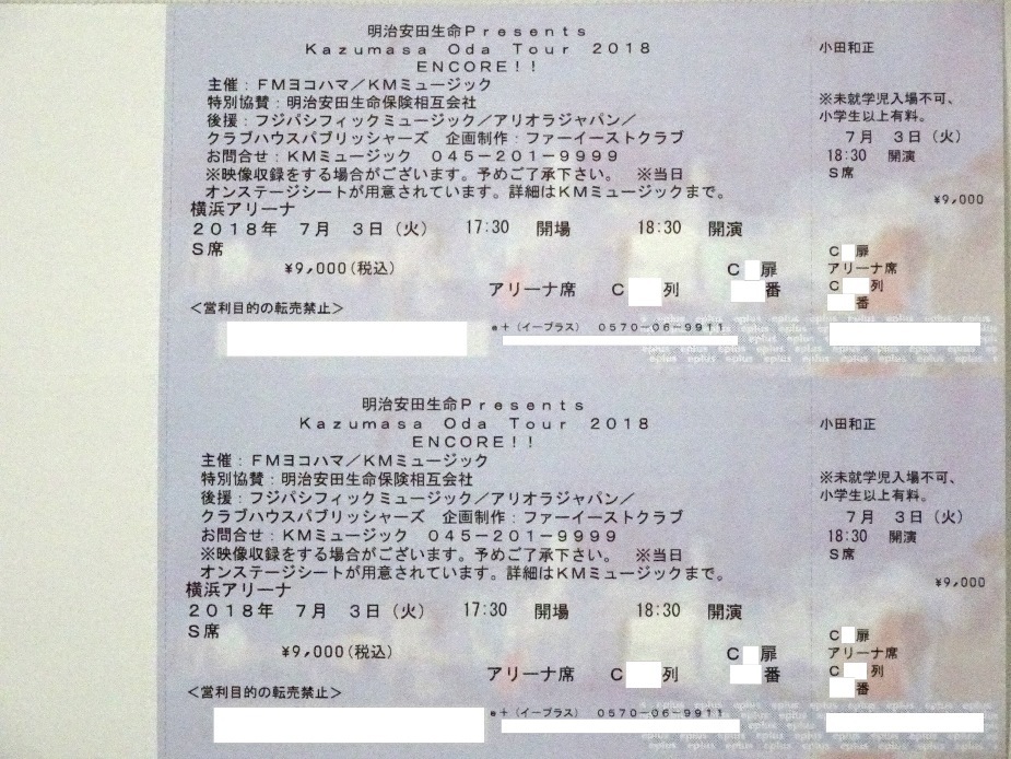 小田和正 横浜アリーナ 7月3日(火) S席連番2枚 アリーナCです。